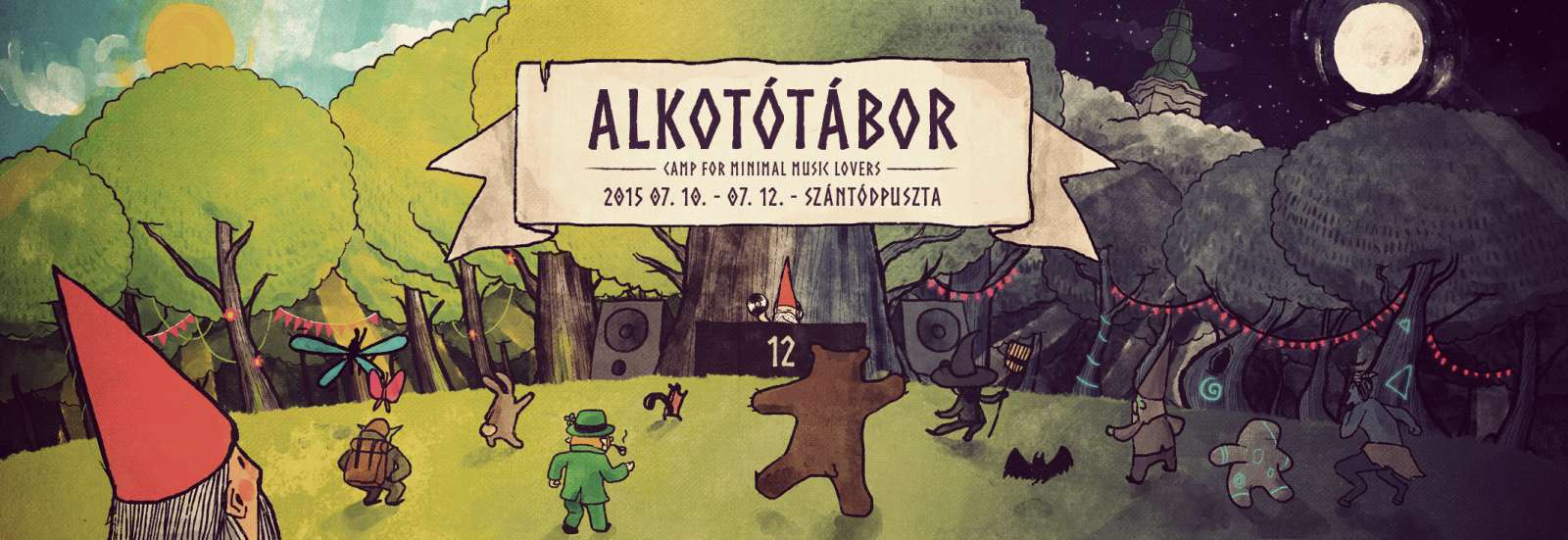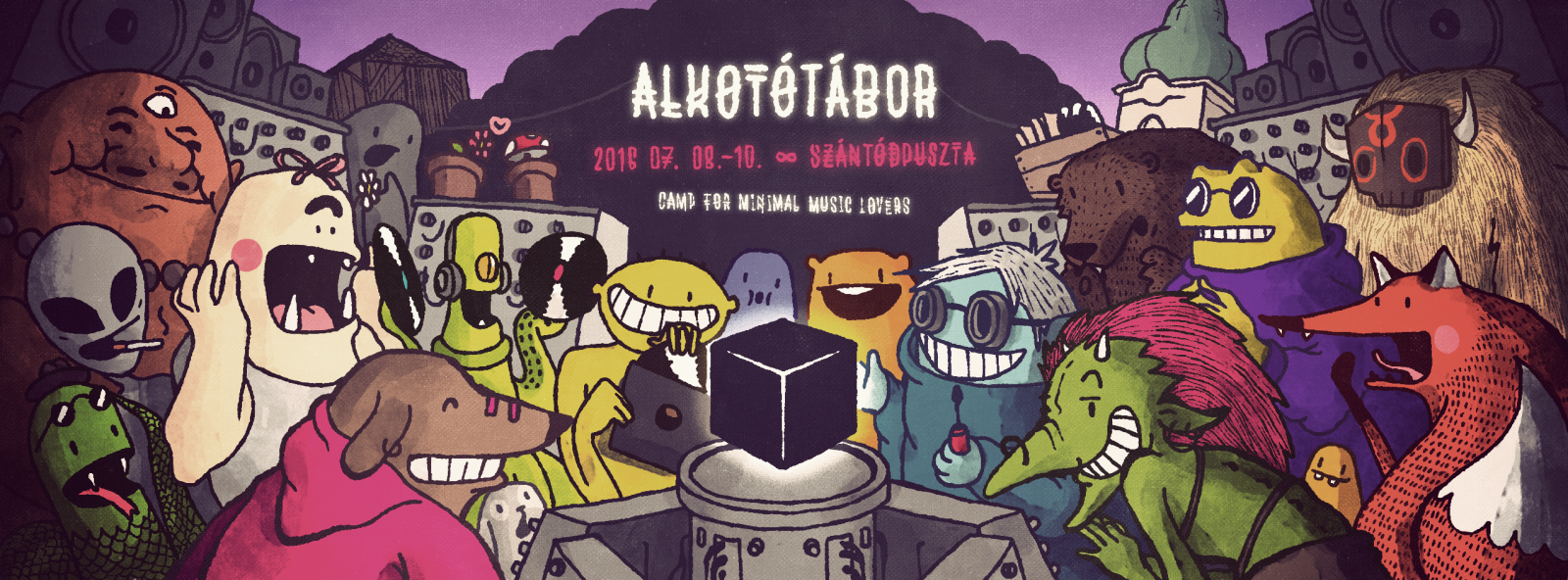 Flyer designs for Alkotótábor, a techno festival in Hungary.