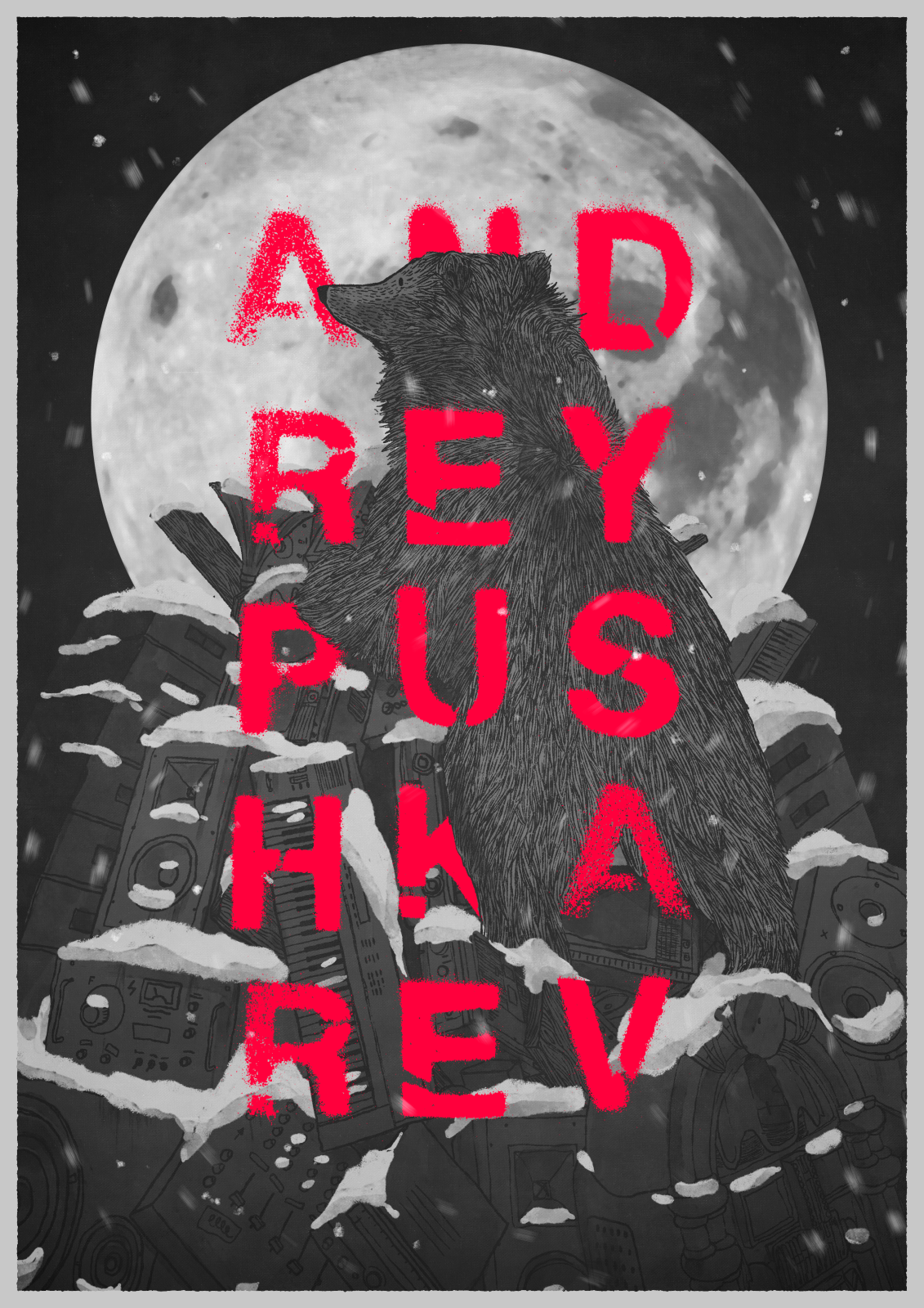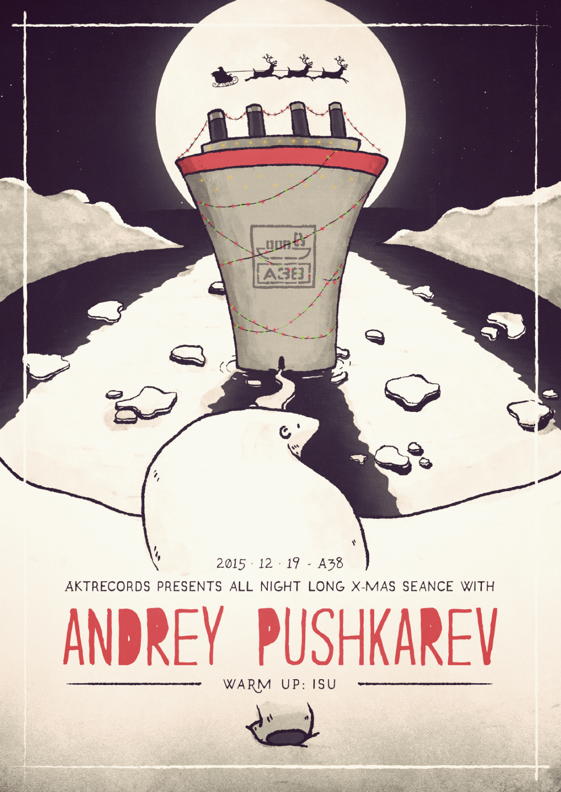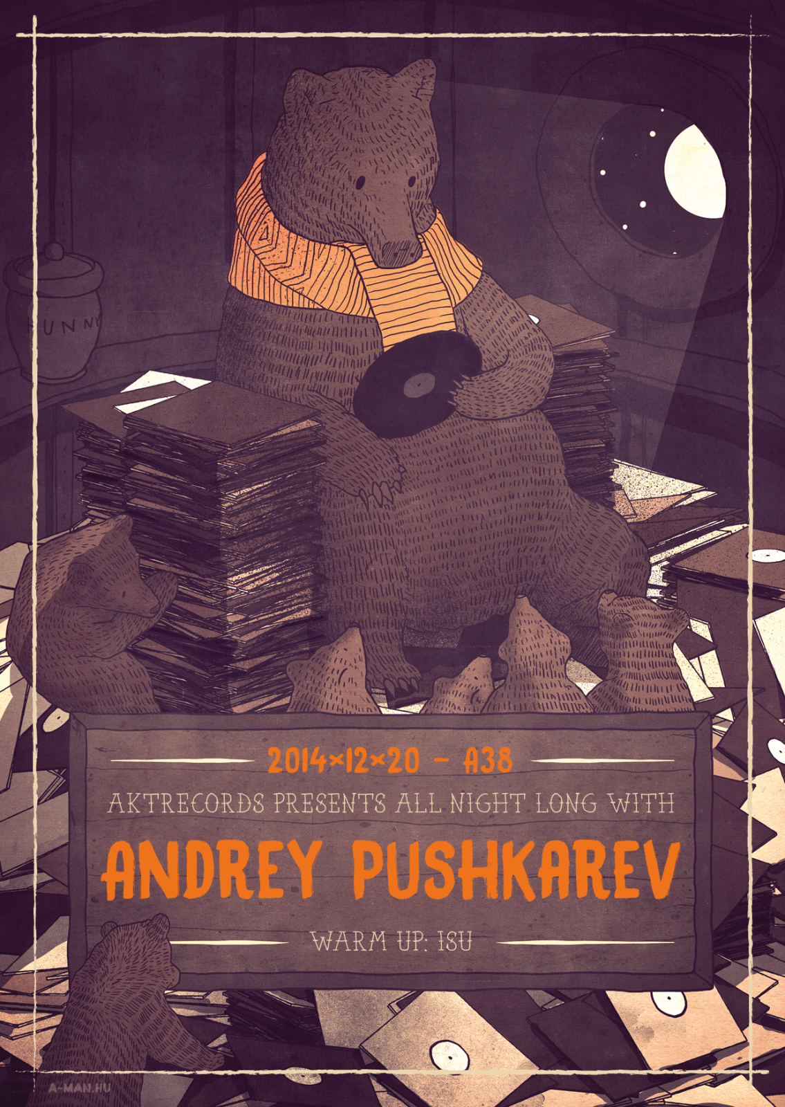 Flyers for Andrey Pushkarev and his brother Izhevski, hosted by the hungarian label and record store Aktrecords.