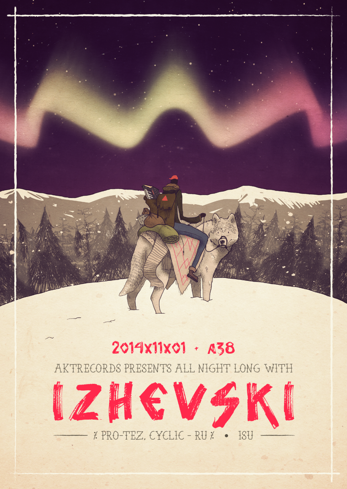 Flyers for Andrey Pushkarev and his brother Izhevski, hosted by the hungarian label and record store Aktrecords.
